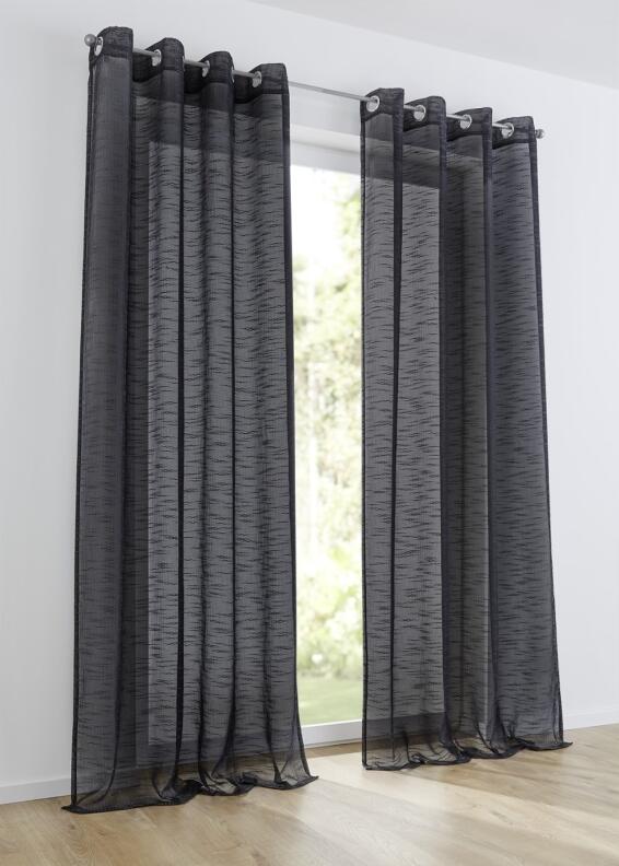 Harmonisch Ton in Ton kombiniert mit einem grauen Sofa oder im Kontrast zu Holzmöbeln und Naturmaterialien wie Wolle und Filz, Celtic anthrazit Ösenschals sind trendig und ausdrucksstark. Gardinen in Nuancen von grau wirken dezent und puristisch.