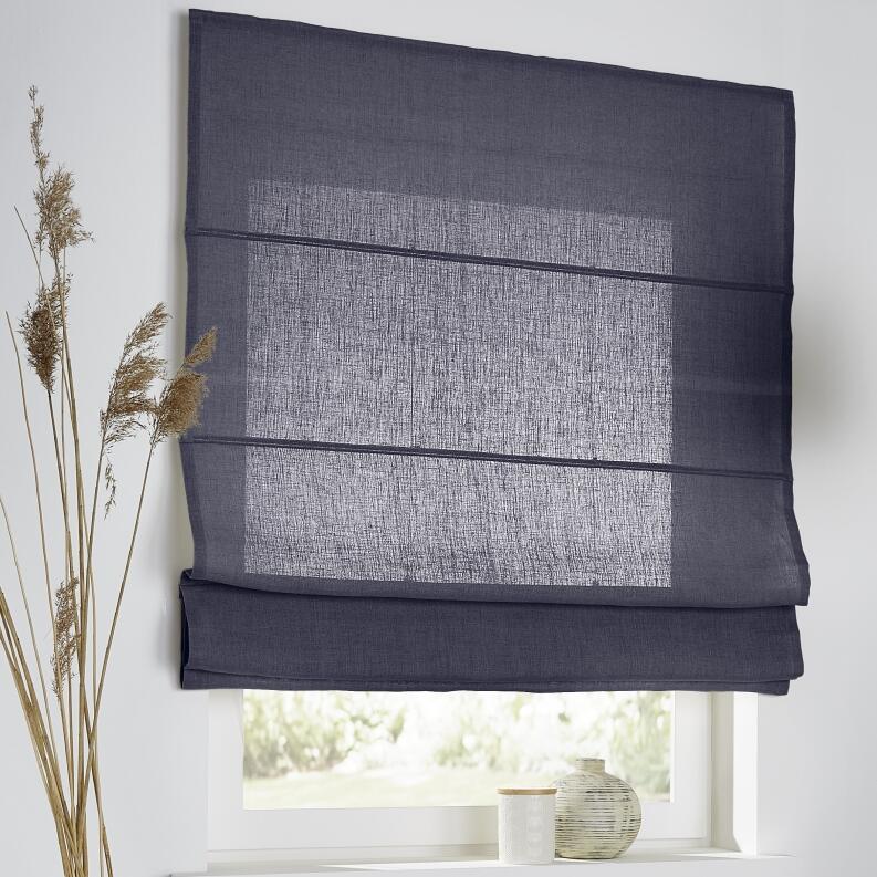 Maßgeschneidertes Raffrollo "Metis" graublau aus 100% Leinen für ein natürliches und wohnliches Ambiente in Ihrem Zuhause
