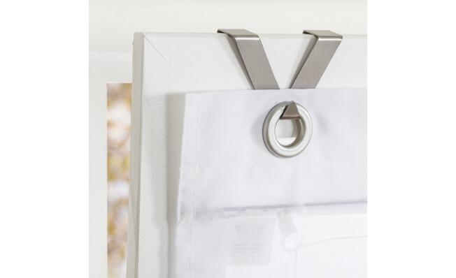 - keine Beschädigungen: Die mitgelieferten hochwertigen Edelstahlhaken werden einfach oben auf den Fensterrahmen aufgesetzt und das Rollo eingehängt – schnell, sicher und rückstandslos wieder entfernbar.