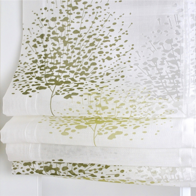 „Danny“ weiß grün Raffrollos / Ösenrollos auf Maß überzeugen feinen, weich fallenden und pflegeleichten Stoff aus 100% Polyester. Sorgfältige und maßgenaue Verarbeitung unserer Raffrollos nach Maß garantieren optimale Passform und Bedienung.