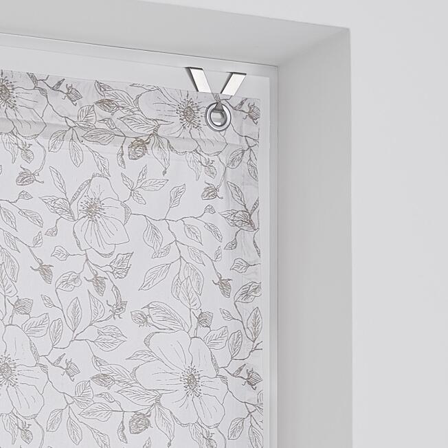 Weißes Raffrollo / Ösenrollo Finja aus Baumwolle mit Blumenmuster - inkl. Edelstahlhaken - Breite 45 - 100 cm 4 Varianten Lieferzeit: 2-3 Tage **ab 24,95 € inkl. 19% MwSt.